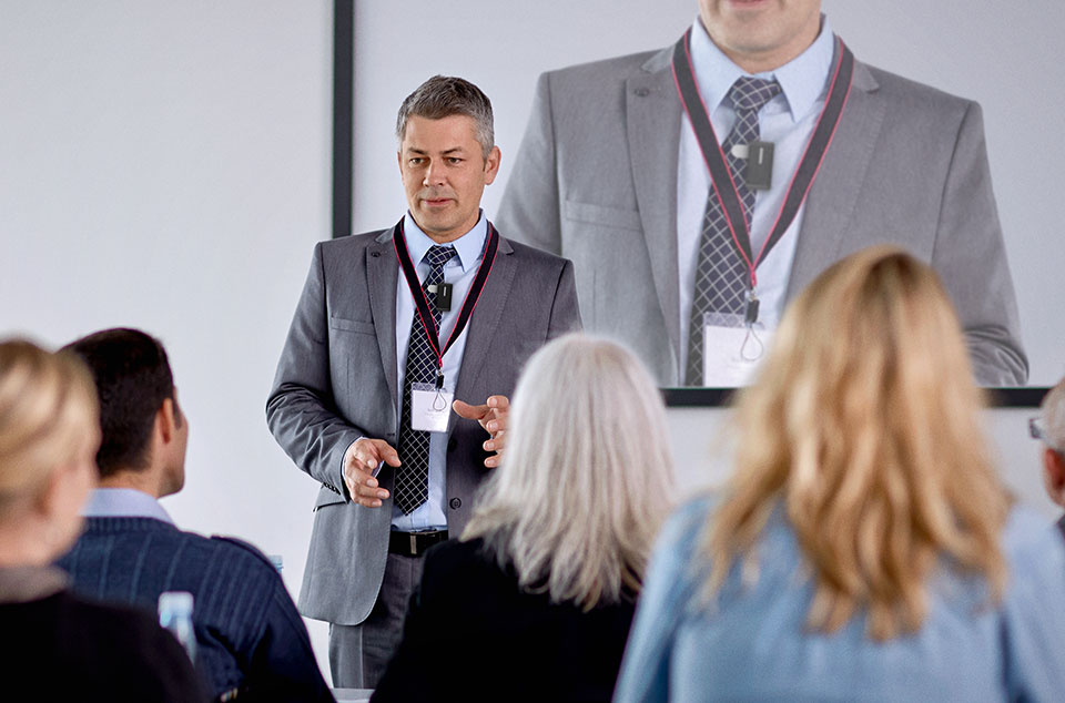 在讲座、演讲等场合,听损用户需要帮助才能更清楚别人的的声音。奥迪康 Opn可以将ConnectClip变成远程麦克风佩戴在讲话者身边,聆听者在20米范围内都能听到讲话者的声音。这在下列场合中特别有用: